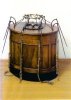 Le« baquet » permet de traiter plus de trente personnes à la fois. Les patients, reliés entre eux par des cordes, sont assis autour d’une caisse circulaire en bois de chéne dont le couvercle est percé de trous et de laquelle sortent des tiges en métal qui peuvent étre en contact avec différentes parties malades du corps. Au fond de la caisse, sur une couche de verre pilé et de limaille de fer, reposent des bouteilles remplies d’eau et rangées symétriquement, certaines pointant vers le centre, d’autres vers la périphérie